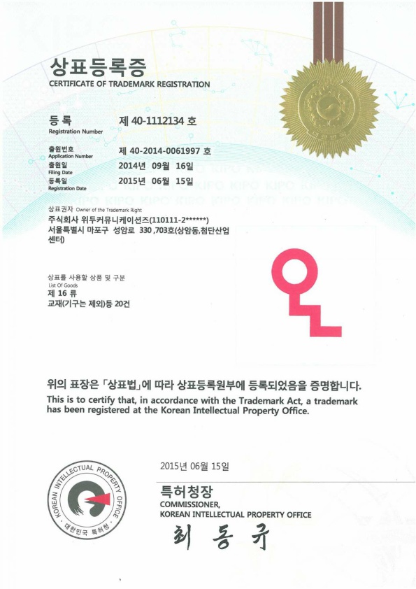 [한국/상표] OLL 16류 페이지 정보 작성자 WeDu 댓글 0건 조회 5,960회 작성일 19-05-30 18:59 본문 2015-06-15 상표 제 40-1112134호 16류 List Previous[한국/상표] OLL 41류 19.05.30 Next[한국/상표] OLL 09류 19.05.30